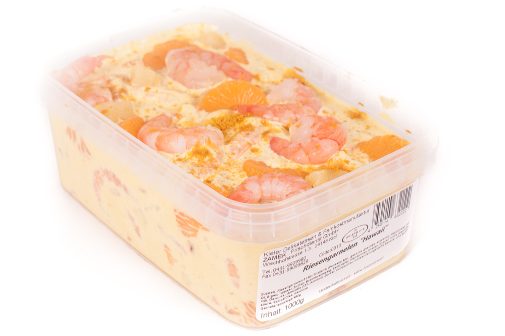 Riesengarnelen (45%), Mandarinen, Ananas, Äpfel, Curry, Mayonnaise