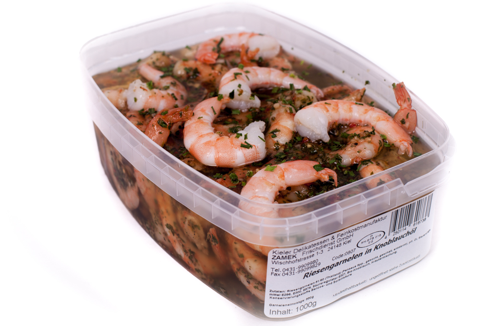 Riesengarnelen (55%), Speiseöl, Knoblauch, Kräuter